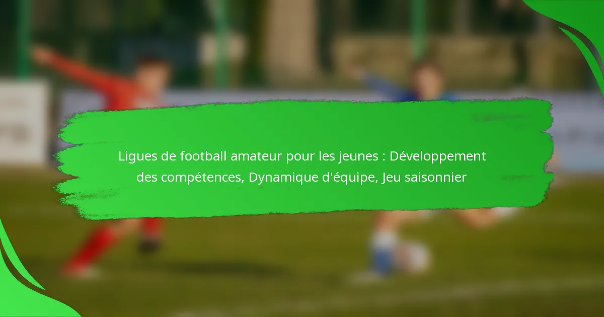 Les ligues de football amateur pour les jeunes sont essentielles pour favoriser des compétences fondamentales chez les jeunes athlètes, y compris les capacités techniques, la compréhension tactique et le travail d’équipe. En mettant l’accent sur la collaboration et la communication, ces ligues créent un environnement où les joueurs peuvent grandir à la fois individuellement et collectivement. Fonctionnant sur une structure saisonnière, elles offrent des matchs réguliers et des opportunités d’entraînement qui encouragent le développement des compétences et améliorent la dynamique d’équipe.